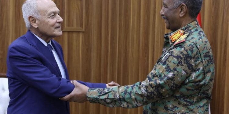 التقي رئيس مجلس السيادة الإنتقالي القائد العام للقوات المسلحة الفريق أول ركن عبدالفتاح البرهان اليوم الأمين العام للجامعة العربية أحمد أبوالغيط، برفقة وفد رفيع المستوى من الجامعة. بحضور وزير الخارجية المكلف السفير على يوسف وسفير السودان لدى جمهورية مصر العربية ومندوب السودان لدى الجامعة العربية الفريق أول ركن عمادالدين عدوي.