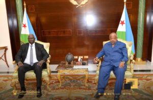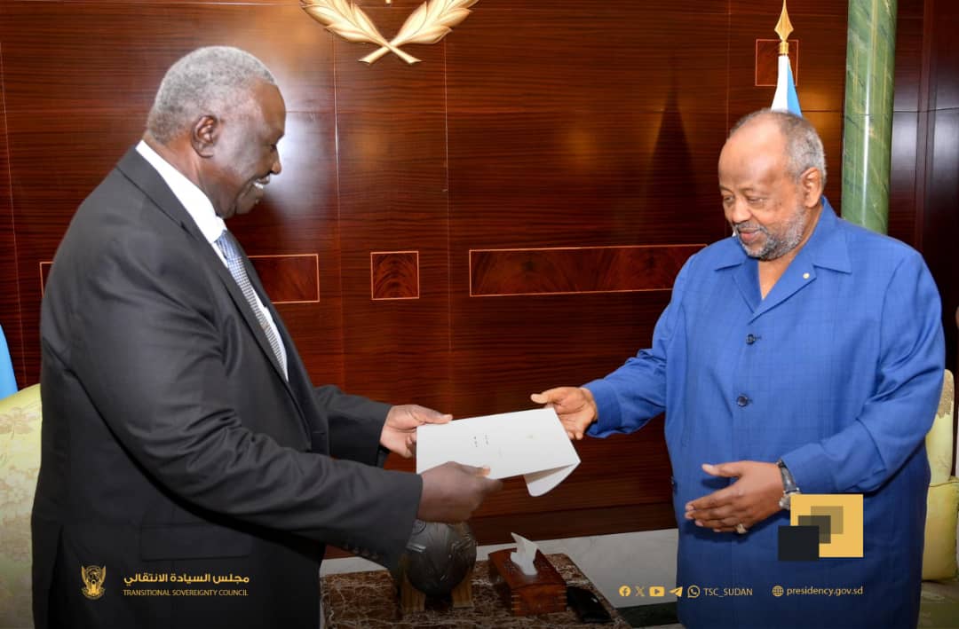 سلّم نائب رئيس مجلس السيادة الإنتقالي، مالك عقار إير، الرئيس الجيبوتي إسماعيل عمر قيلا، رسالة خطية من رئيس مجلس السيادة القائد العام للقوات المسلحة الفريق أول الركن عبد الفتاح البرهانتتعلق بالعلاقات الثنائية بين البلدين وسبل تطويرها.