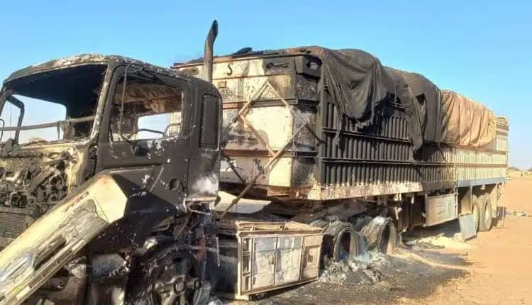أقدمت مليشيا الدعم السريع الإرهابية يوم الإثنين 2 يونيو 2025م على حرق قافلة مساعدات إنسانية تابعة لبرنامج الأغذية العالمي (WFP) كانت متجهة إلى مدينة الفاشر المحاصرة، بعد أن احتجزتها لأكثر من أسبوع في منطقة الكومة بشمال دارفور.