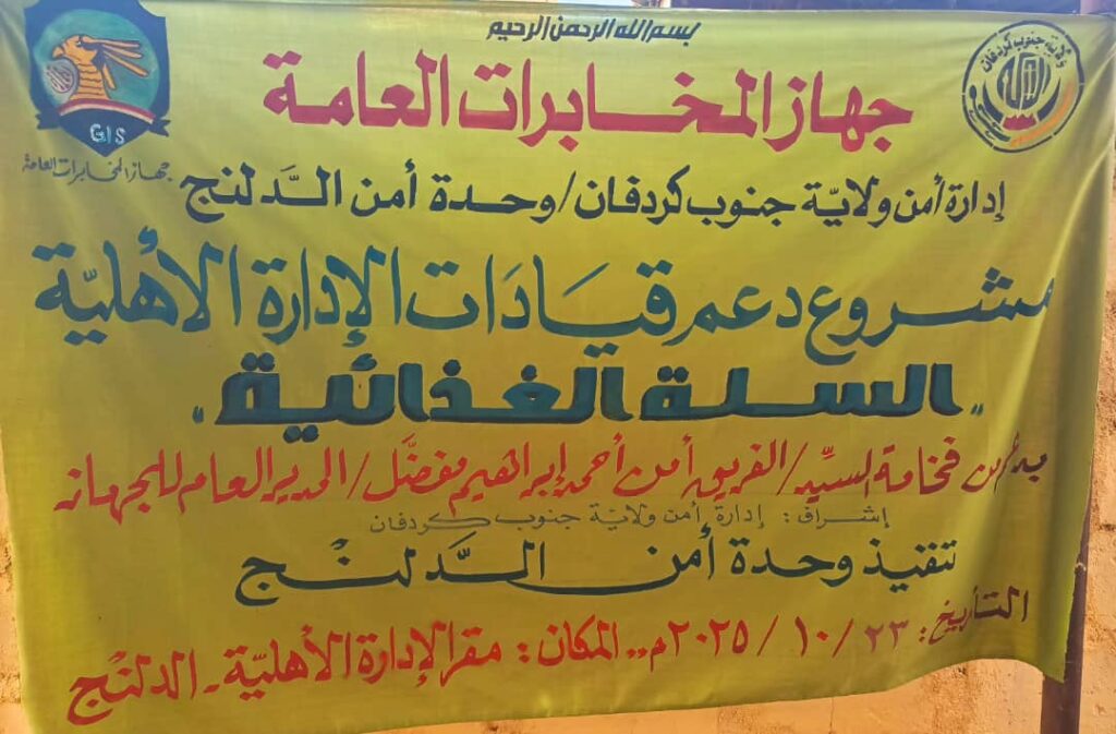 دشن جهاز المخابرات العامة الدلنج برنامجه لدعم الإدارات الأهلية بالدلنج عبر توفير سلة غذائية بحضور لجنة أمن المحافظة والعديد من قيادات المجتمع والادارة الأهلية بالدلنج وياتى هذا البرنامج فى اطار الدعم الاتحادى لدعم الشرائح الضعيفة والمتاثرة بالحرب بدعم مقدر من المدير العام لجهاز المخابرات العامة الفريق اول احمد ابراهيم مفضل.
