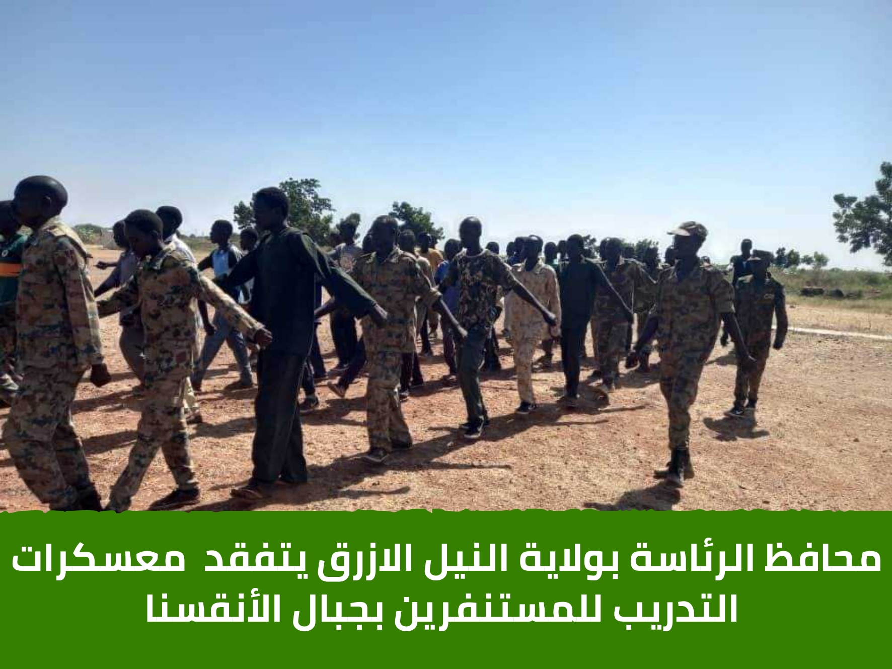 تفقد الاستاذ عبدالغني دقيس خليفة محافظ شئون الرئاسة نائب رئيس اللجنة العليا لدعم القوات المسلحة بإقليم النيل الأزرق، معسكرات التدريب بجبال الأنقسنا والوقوف على المراحل الاخيره لتخريج المستنفرين في منتصف يناير.