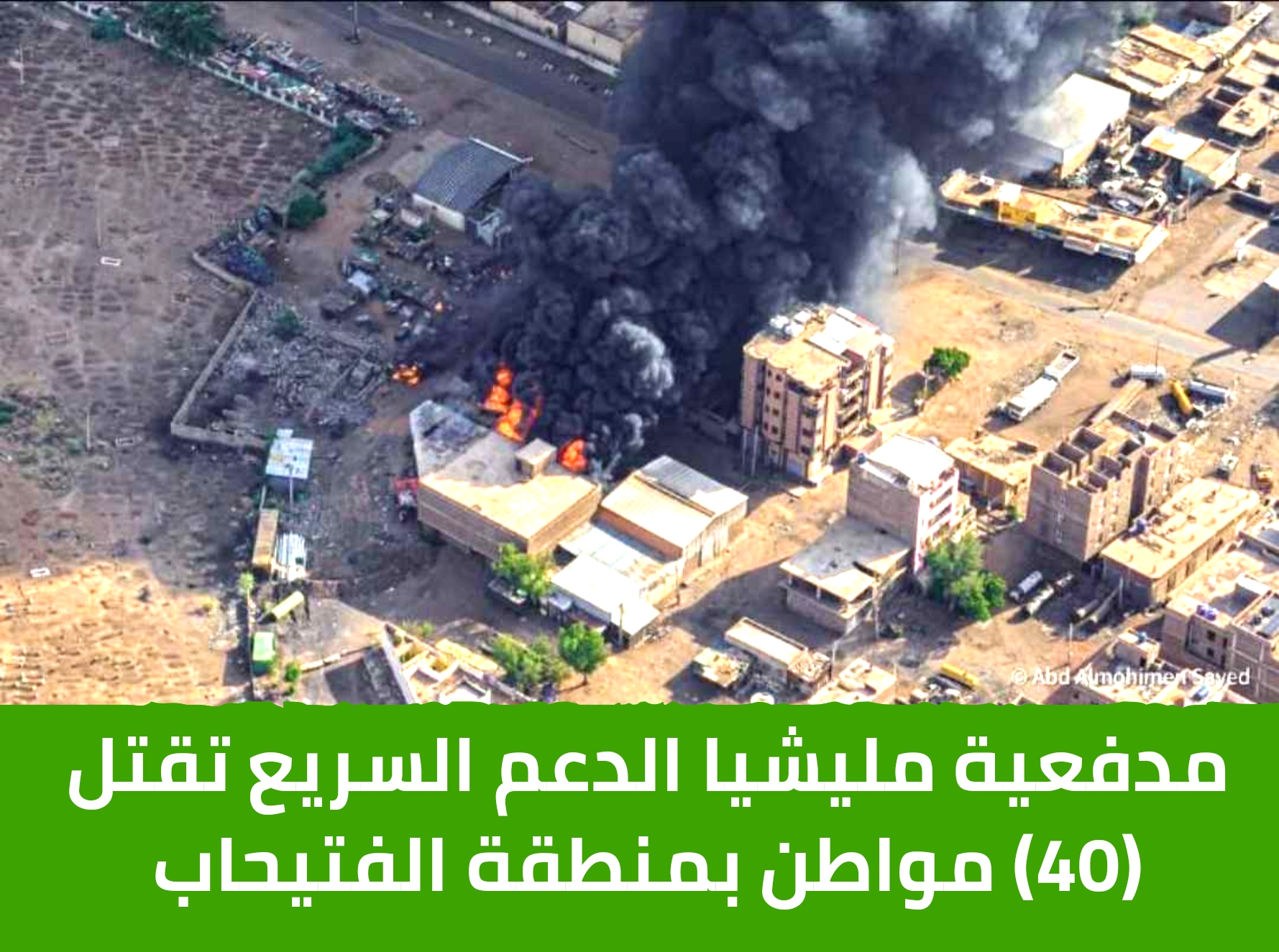 لقي نحو 40 شخصا مصرعهم في سوق “البابور “بمنطقة الفتيحاب بأم درمان جراء تدوين مدفعية مليشيا الدعم السريع الإرهابية المتمردة المتواصل للمنطقة .