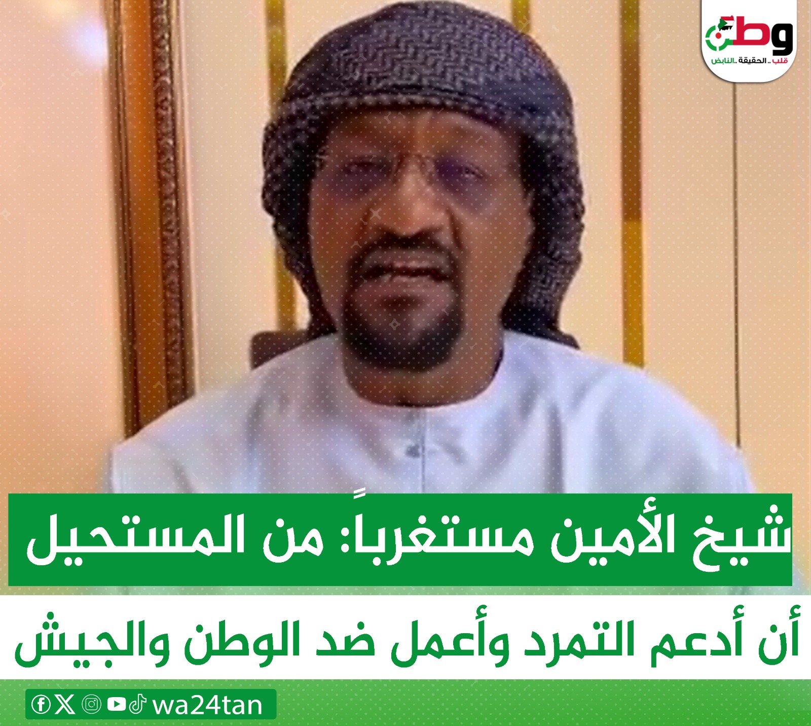 أوضح الشيخ الأمين عمر الحقائق حول ما شاع عن اعتقاله بواسطة قوة تتبع للقوات المسلحة وطمأن الشيخ الأمين مناصريه بأنه في مكان آمن بصحبة القوات المسلحة ولا صحة لما يشاع عن اعتقاله