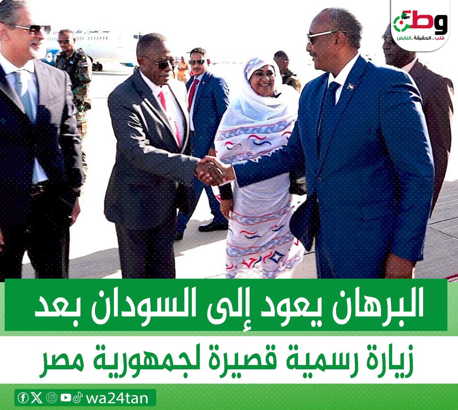 عاد رئيس مجلس السيادة الانتقالي في السودان الفريق أول ركن عبد الفتاح البرهان الي البلاد ، بعد زيارة رسمية قصيرة لجمهورية مصر العربية ، أجرى خلالها مباحثات مع الرئيس المصري عبد الفتاح السيسي، تناولت سُـبُل تعزيز العلاقات الثنائية بين البلدين وترقية التعاون المشترك في مختلف المجالات.