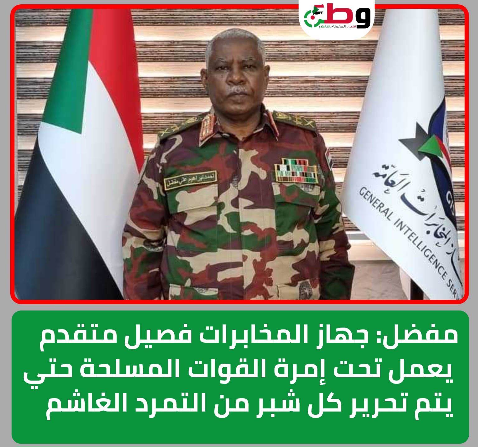 أكد المدير العام لجهاز المخابرات العامة السوداني الفريق أول أمن أحمد ابراهيم مفضل، ان جهاز المخابرات العامة فصيل متقدم يعمل تحت إمرة القوات المسلحة وقيادتها وعلى قلب رجل واحد بقيادة القائد الاعلى للقوات المسلحة ، الفريق اول ركن عبدالفتاح البرهان ، لتحرير كل الاراضي والمدن والارياف التي دنستها المليشيا المتمردة في الخرطوم ودارفور ومدني وحتى الحنينة دار اندوكا وخصوصا في معركة امدرمان .