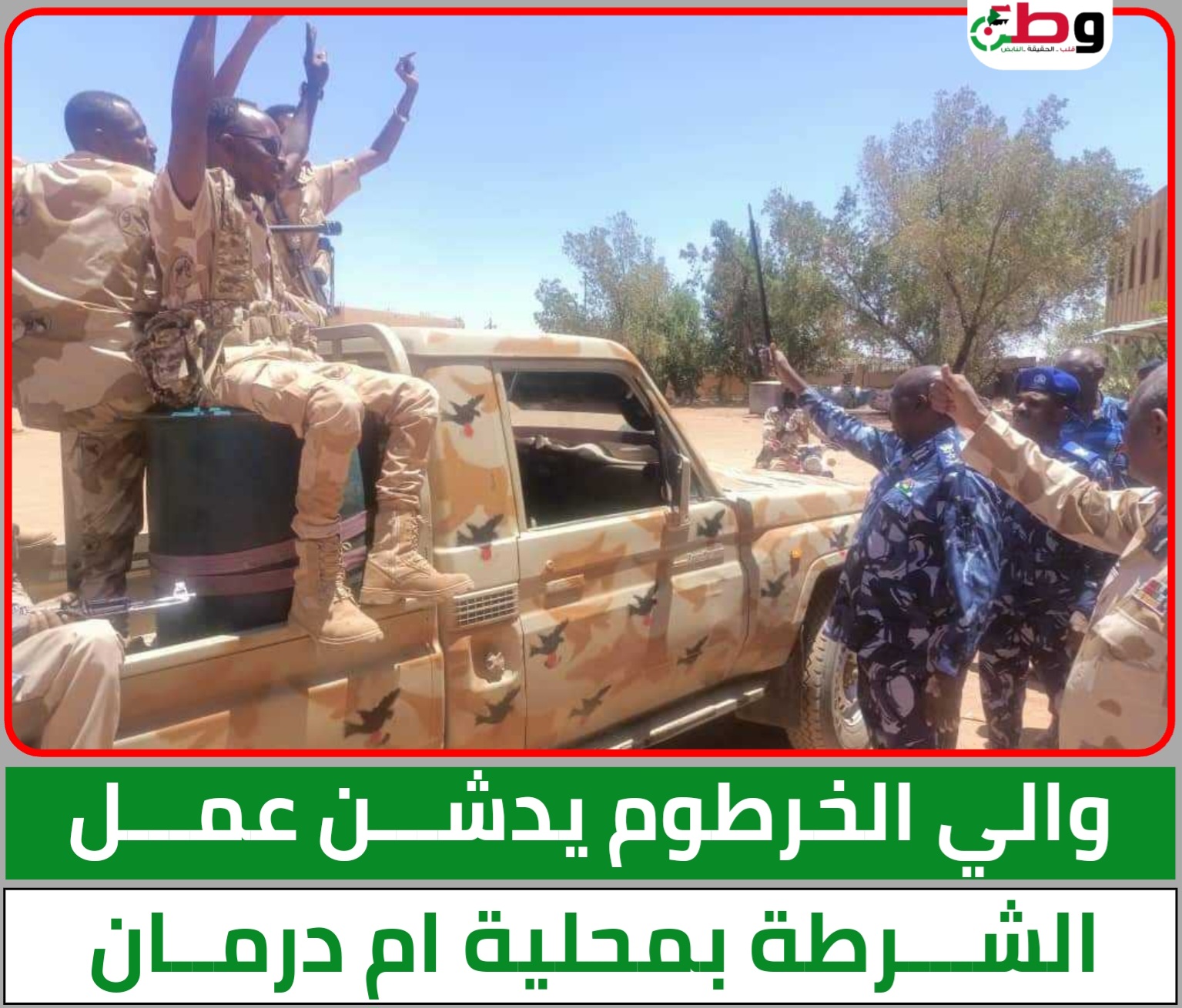 واكد والي الخرطوم خلال مخاطبته القوات أن الشرطة السودانية موجودة في الصفوف الامامية وقدمت الشهداء واستعادت خدماتها في محلية كرري في اقسام الجوازات السجل المدني وترخيص المركبات ، وأضاف “شكلت شرطة امبدة وامدرمان حضوراً قوياً في هذه المرحلة وتقدم اعمال جليلة في تأمين السودان”.