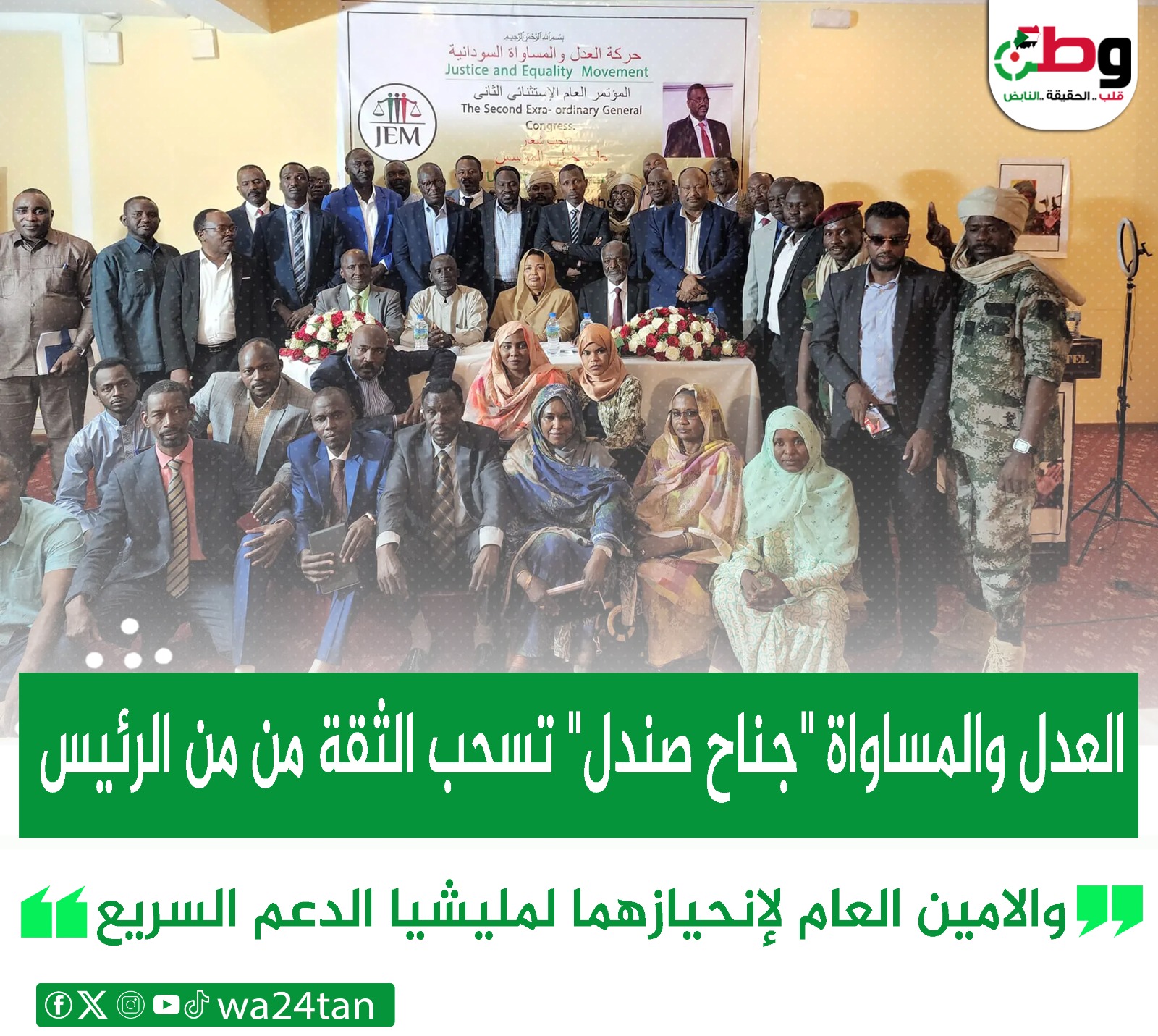 أعلنت مجموعة من أعضاء حركة العدل والمساواة السودانية بقيادة سليمان صندل حقار عن سحب الثقة من رئيس الحركة وأمينها العام احمد تقد.