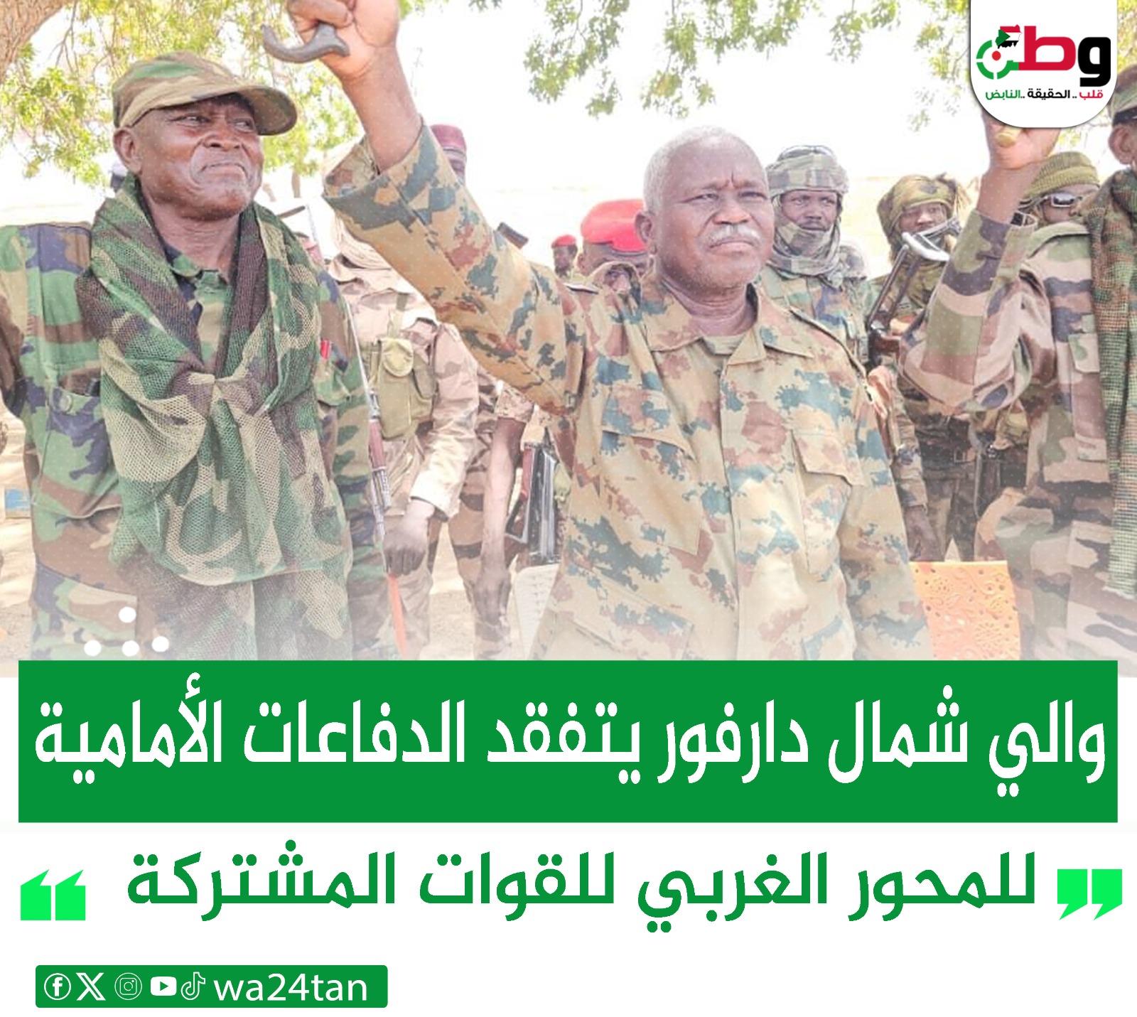 تفقد والي ولاية شمال دارفور المكلف الحافظ بخيت محمد، الدفاعات الأمامية في المحور الغربي للقوات المشتركة المتمركزة بمنطقتي “شقرة وقولو” .